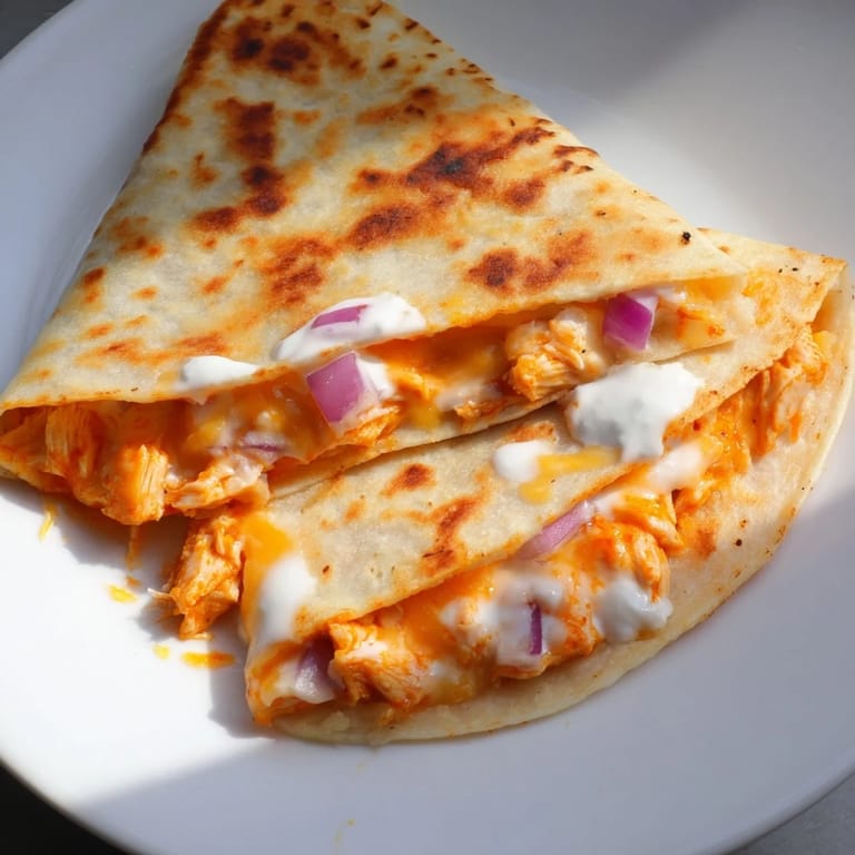 The best quesadillas come from thinking about every layer doing something different on your palate. You need the heat from buffalo, the cool creaminess from ranch, the snap of red onion, and the freshness of cilantro if you're using it. When all four are working together, that's when people start asking for a second one. That's when you know you've done something right.