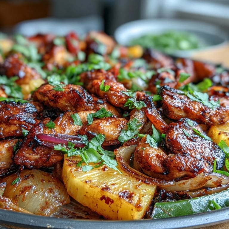 Save When weeknight dinners call for something bold, vibrant, and effortlessly delicious, these Chicken Pineapple Sheet Pan Fajitas answer with a resounding yes. Imagine tender chicken strips mingling with caramelized pineapple chunks and colorful bell peppers, all roasted to perfection on a single sheet pan. The sweet and tangy notes of pineapple dance with the smoky, earthy spices of chili powder and cumin, creating a Tex-Mex masterpiece that's as beautiful as it is flavorful. This is the kind of meal that brings everyone to the table with anticipation, and the best part? Cleanup is a breeze.