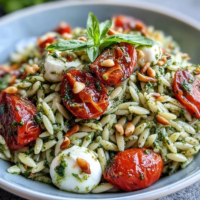 Save If I close my eyes and recall a July afternoon with the kitchen windows flung wide, I can still smell the basil perfuming the entire house. It was one of those days when the thought of anything hot for lunch was unbearable, and I found myself eyeing leftover orzo and that jar of pesto stashed in the fridge. The idea for this salad came together quickly, almost as an afterthought, while chatting absentmindedly on the phone with my sister. I’ve since realized how perfect it is: unfussy, impossibly fresh, and a lifesaver during a hectic week. Even now, making it feels like pressing pause on a summer afternoon.