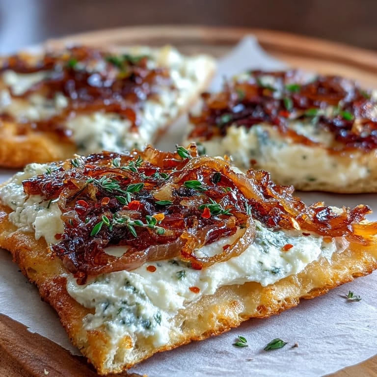 Save My neighbor knocked on my kitchen door one evening with a bottle of wine and the suggestion that we needed something to eat—fast. I had goat cheese softening on the counter, half an intention to caramelize some onions, and a store-bought flatbread gathering dust in the pantry. Twenty minutes later, we were pulling this golden, bubbly creation from the oven, and she hasn't stopped asking for the recipe since. It's become my go-to when I want something that tastes like effort but requires almost none.