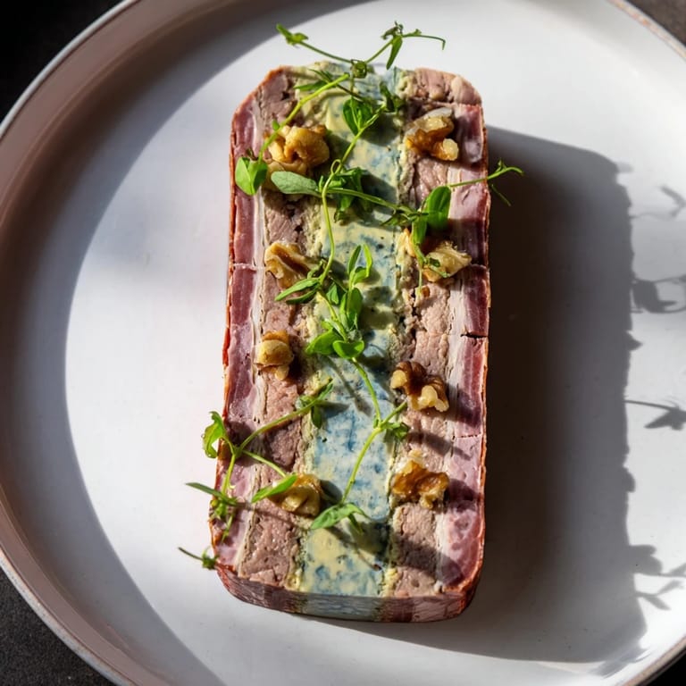 The genius of this dish is that each meat layer brings its own personality. The beef grounds everything with umami depth, the turkey keeps it refined, the ham adds smoke and salt, and the pork brings delicate sweetness. When you slice through, all of those flavors hit you at once, but not chaotically. The blue cheese river cuts through with its sharp, salty personality, and somehow it ties everything together instead of competing. I've learned that when you're layering flavors, restraint matters more than abundance. Each ingredient has space to be itself.