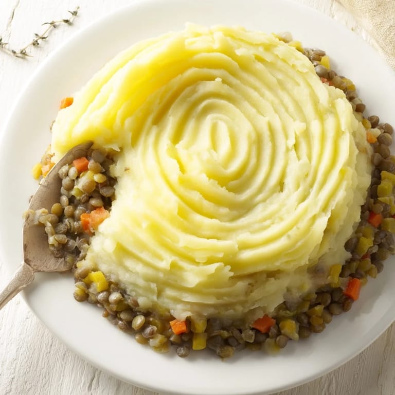 Save A comforting vegetarian twist on the classic shepherds pie, featuring a savory lentil and vegetable filling topped with creamy mashed potatoes, baked to golden perfection.