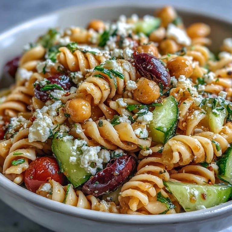 Save There's something about a bowl of Mediterranean chickpea pasta salad that instantly transports me back to a sun-drenched afternoon on a friend's balcony, where we were scrambling to bring something to a spontaneous potluck. I'd grabbed whatever looked good at the market—plump tomatoes, a crisp cucumber, briny olives—and realized I could toss it all together with some pasta and chickpeas for protein. The moment that lemon-herb dressing hit the cold pasta, I knew I'd stumbled onto something special.