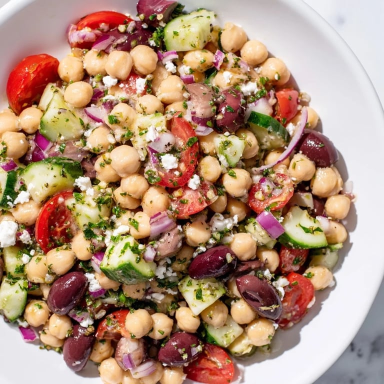 Save There's something about assembling a Mediterranean chickpea salad that feels less like cooking and more like gathering—the kind of meal that comes together while you're chatting with someone in the kitchen, the afternoon sun streaming through the window. I discovered this particular combination on a surprisingly warm April evening when I had about fifteen minutes and a can of chickpeas that needed rescuing from the back of my pantry. What started as a practical lunch turned into something I've made countless times since, each time discovering new reasons why it works so perfectly.