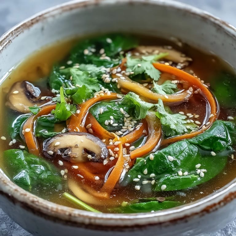 On evenings when I need something more substantial, I transform this soup into a complete meal with minimal effort. Sometimes I'll drop in some cubed firm tofu during the last five minutes, or prepare soba noodles separately and add them to individual bowls before ladling the hot soup over top. The key is keeping the additions simple so they complement rather than compete with the delicate balance of flavors in the broth.