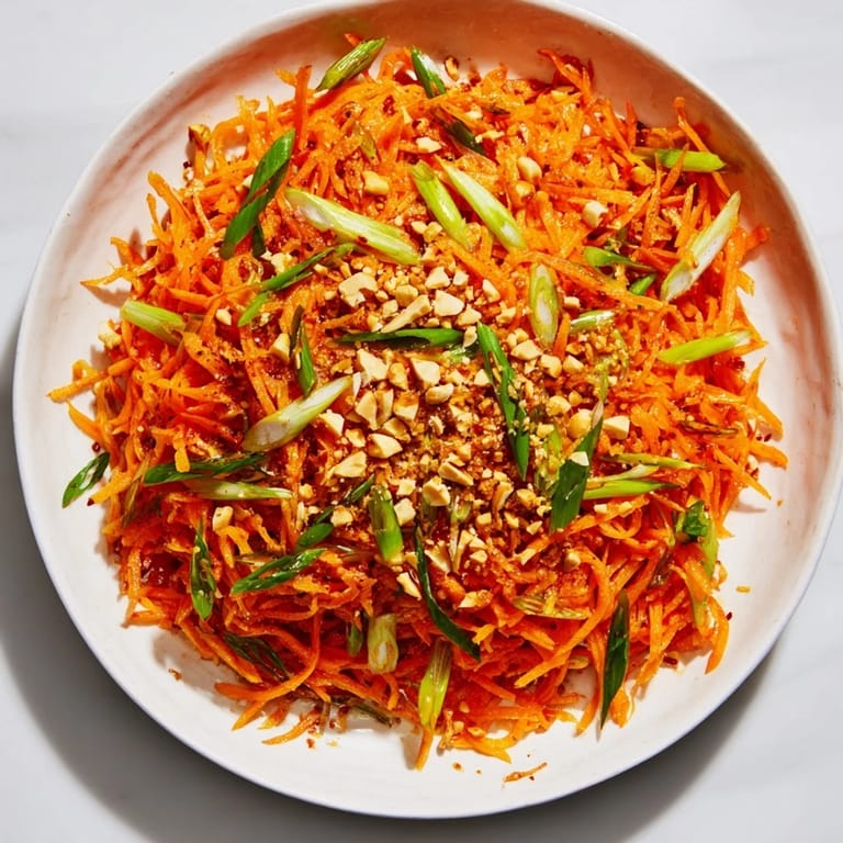 Save I discovered this salad on a sweltering afternoon when my fridge felt too warm for cooking anything elaborate. A friend dropped by with a bag of just-pulled carrots from a farmer's market, and rather than let them wilt, I grabbed my box grater and started shredding. The smell of fresh ginger and garlic hitting hot sesame oil in that small bowl—that moment changed what I thought a simple salad could be.