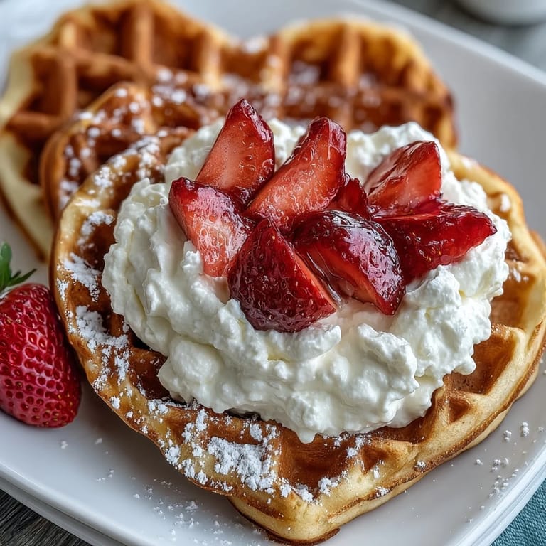 Save There's something about heart-shaped waffles that makes even a quiet Tuesday morning feel like a celebration. I discovered this combination completely by accident when my sister brought over a tub of cottage cheese she swore would change my breakfast game, and honestly, she wasn't wrong. The first time I pressed that batter into my heart waffle iron and watched it turn golden, I knew I'd stumbled onto something special—something that tastes elegant but comes together in barely half an hour.