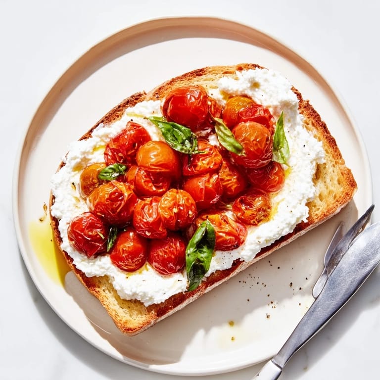 Save The smell of roasting tomatoes pulled me out of a Sunday morning fog I hadn't even realized I was in. I'd tossed them in the oven almost carelessly, half-focused on coffee, half-lost in thought. But twenty minutes later, their sweet, concentrated scent filled the kitchen and suddenly I was wide awake. That's when I understood this wasn't just toast, it was a reset button disguised as breakfast.