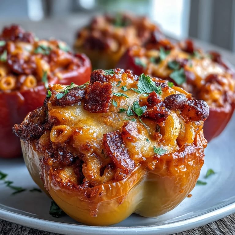 I made this for my sister right after she started a new job and was too tired to cook anything beyond cereal. Watching her face when she bit into the cheesy, spiced-meat-and-pasta-filled pepper made the whole thing worthwhile—suddenly it wasn't just dinner, it was proof that someone cared enough to spend an evening in the kitchen for her.