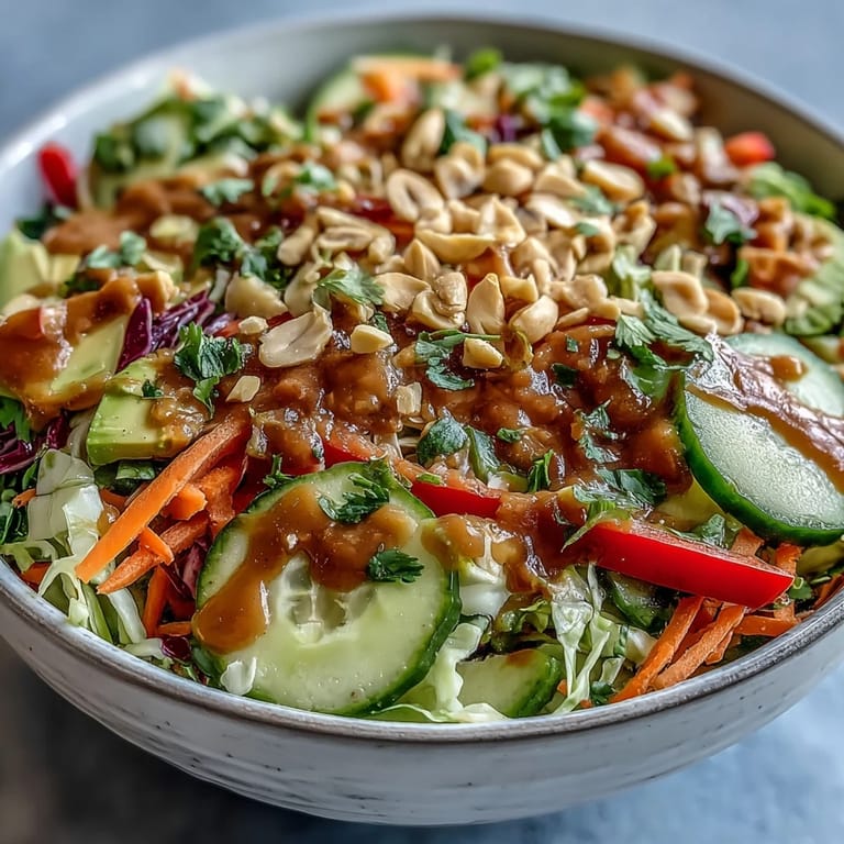 Save One humid afternoon, I was standing in my kitchen staring at a pile of fresh herbs and vegetables, wishing for something that tasted like a Vietnamese street market but required zero cooking. That's when this salad clicked into place, inspired by spring rolls but stripped down to their most vibrant essence. The peanut dressing came together almost by accident, really, when I realized I had lime juice and sesame oil sitting next to a jar of peanut butter. What started as improvisation became the one salad I crave when the weather turns warm and my appetite shrinks but my need for flavor doesn't budge.